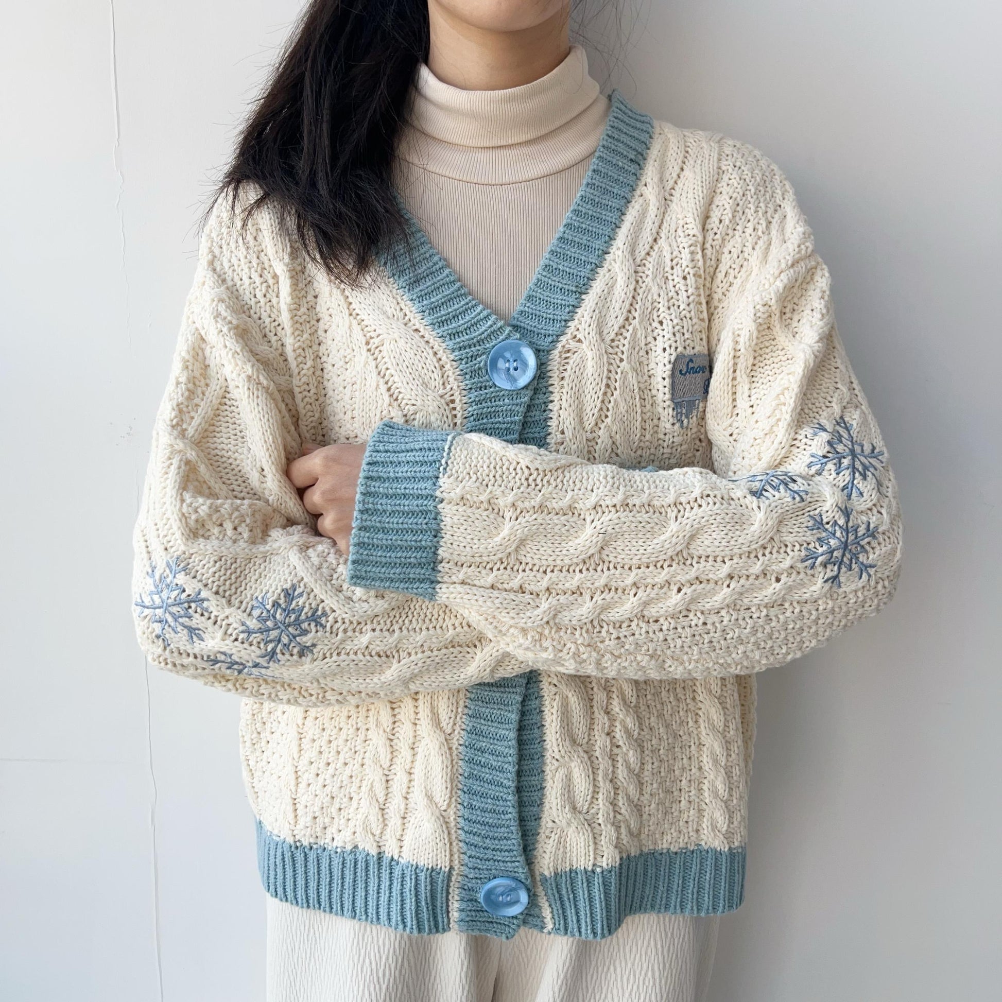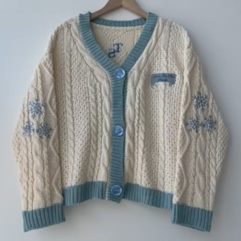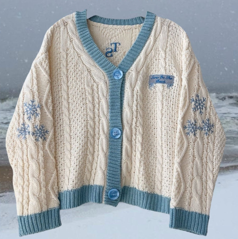 Something beautiful has washed up on shore..." Introducing the Snow on the Beach Cardigan, a design inspired by the magical and surreal meeting of snow and sea.