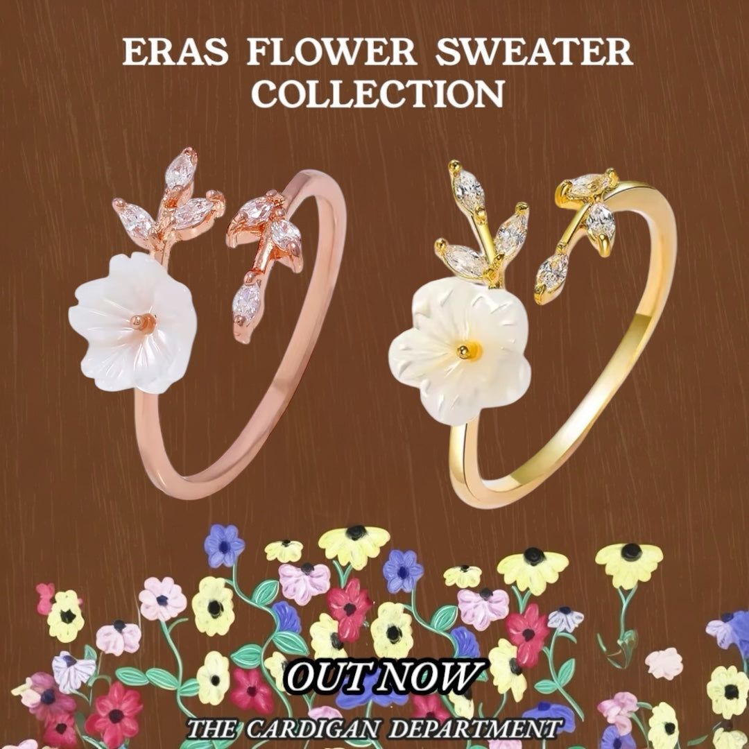 Blooming with quiet charm, this gold-tone ring features a sculpted flower and shimmering crystal sprigs—like a single note from the piano that started it all. A nod to the garden that grew with every era.