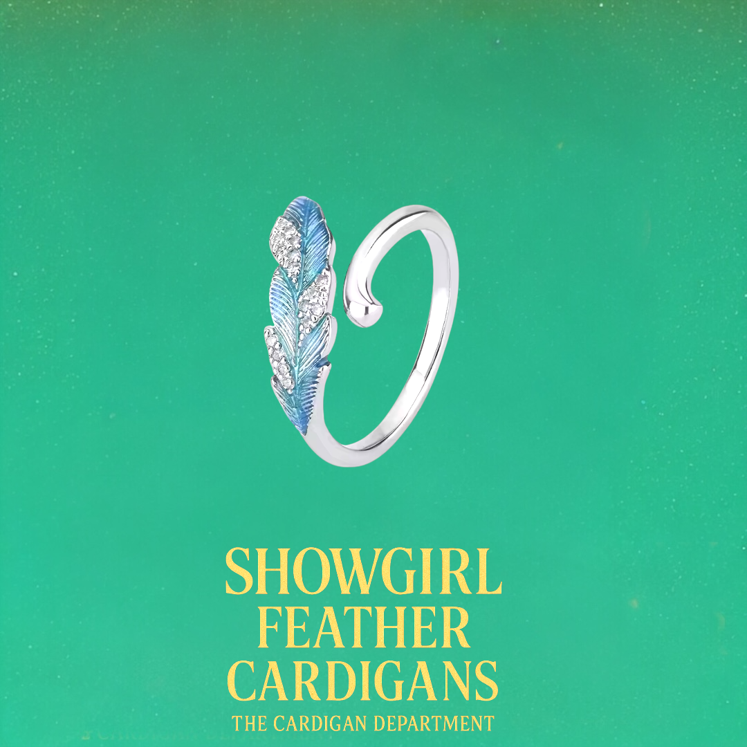 A bold feather design with sky-blue enamel and crystal sparkle. A show-stopping accessory that catches every eye.